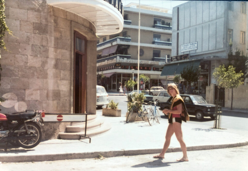 Ingemar på väg från badet. Den hyrda mc:n till vänster.